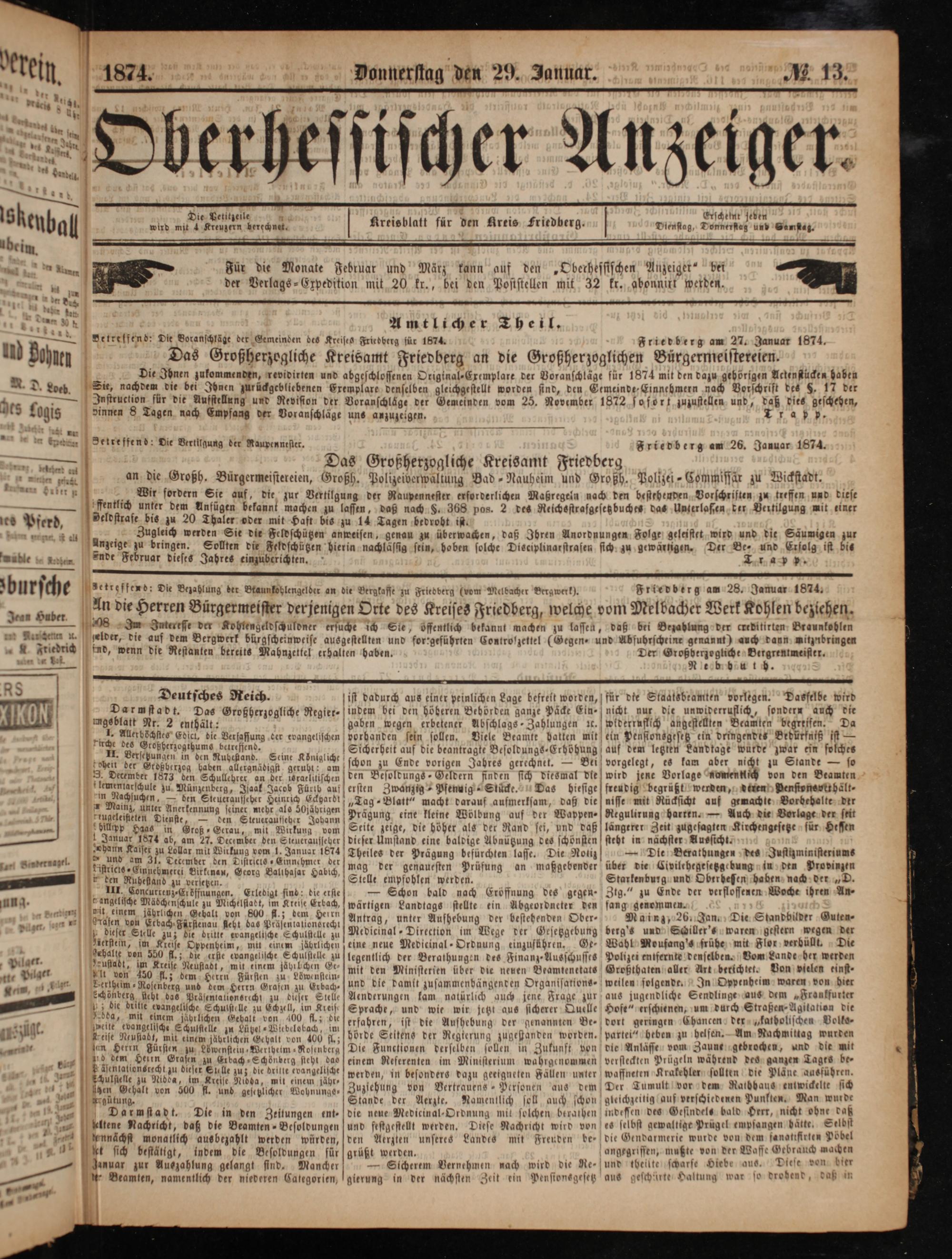 Für die Monate Februar und März kann auf den„Oberhessischen Anzeiget“ bei der Verlags⸗Expedition mit 20 kr., bei den Poststellen mit 32 kr. abonnitt werden.