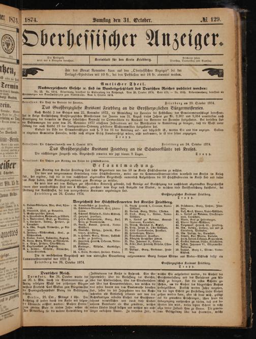 Für den Monat November kann auf den„Oberhessischen Anzeiger“ bei der Verlags ⸗Expedition mit 10 kr., bei den Poststellen mit 16 kr. abonnirt werden.