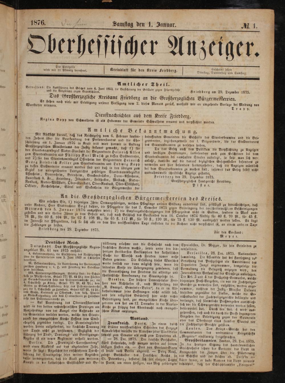 Friedberg den 29. Dezember 1875.