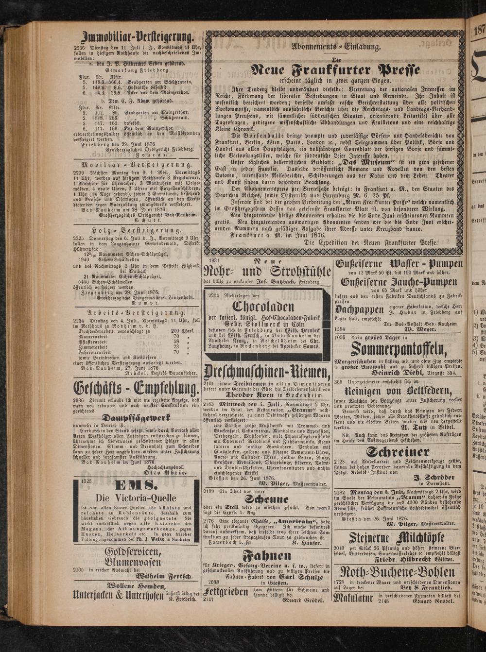 versteigert werden. Friedberg den 29. Juni 1876 Großherzogliches Ortsgericht Friedberg. Fou cs x.
