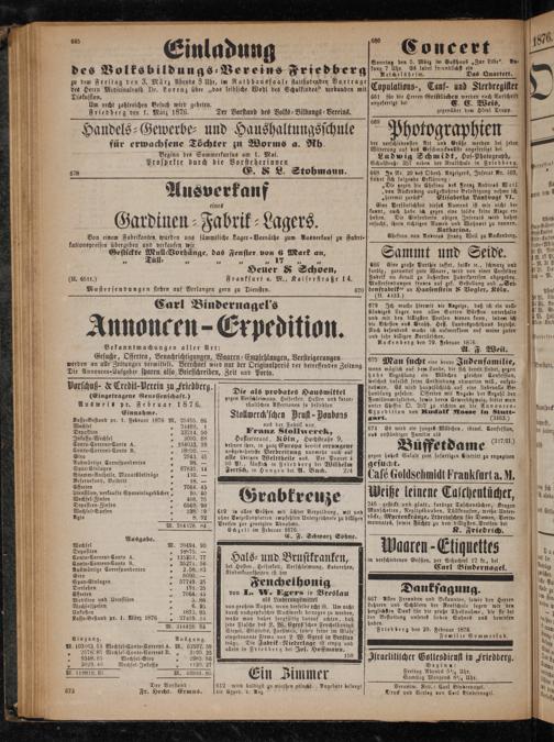 Friedberg den 29. Februar 1876. b Familie Sommerlad.