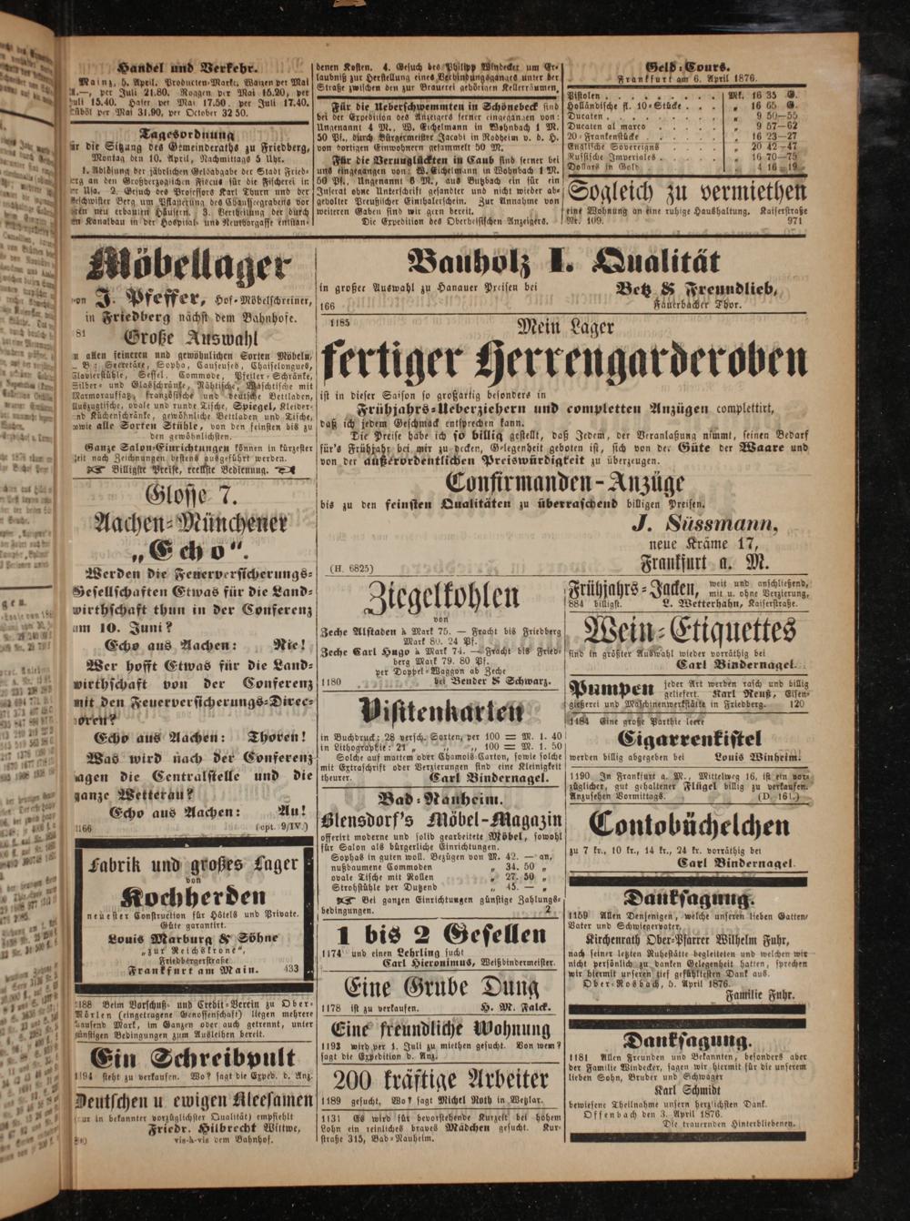 bewiesene Thellnahme unsern herzlichsten Dank. Offenbach den 3. April 1876. Die trauernden Hinterbliebenen.