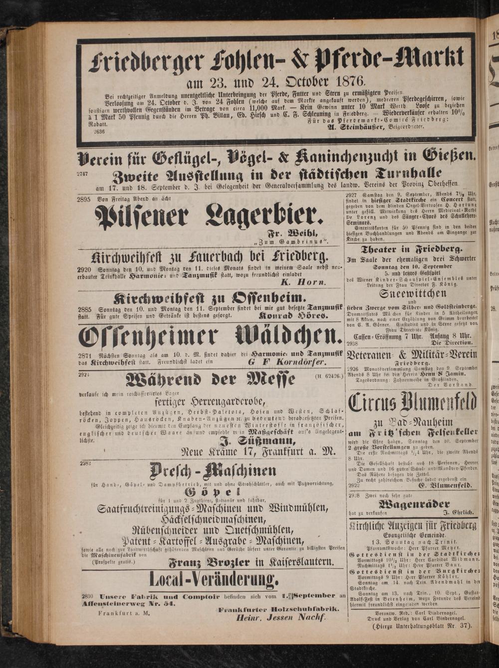 Verantw. Red.: Carl Bindernagel. Druck und Verlag von Carl Bindernagel.