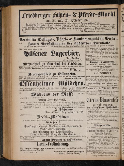 2895 Von Freitag Abend an ächt 3 2927 Samstag den 9. September, Abends 7½ Uhr, findet in hiesiger Stadtkirche ein Concert statt, gegeben von dem blinden Orgel-Virtuosen H. Hartung
