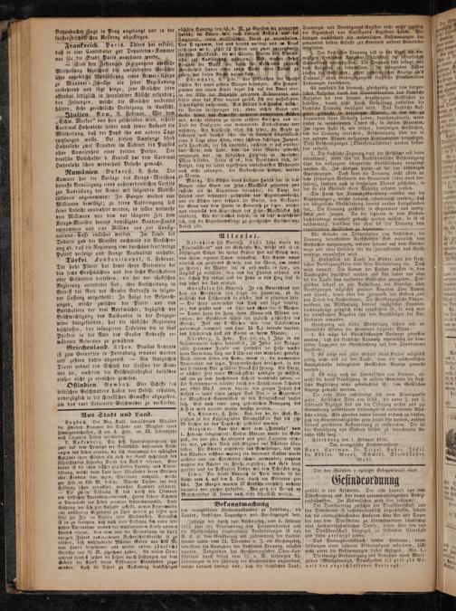 Alle Gesuche um Dispensation von kirchlichen, die Trauung betreffenden Vorschriften sind mündlich dem Geistlichen vorzutragen, welcher sodann auf dem Berichk⸗ wege und ohne Unkosten für die Interessenten das Noth⸗ wendige vexanlassen wird.
