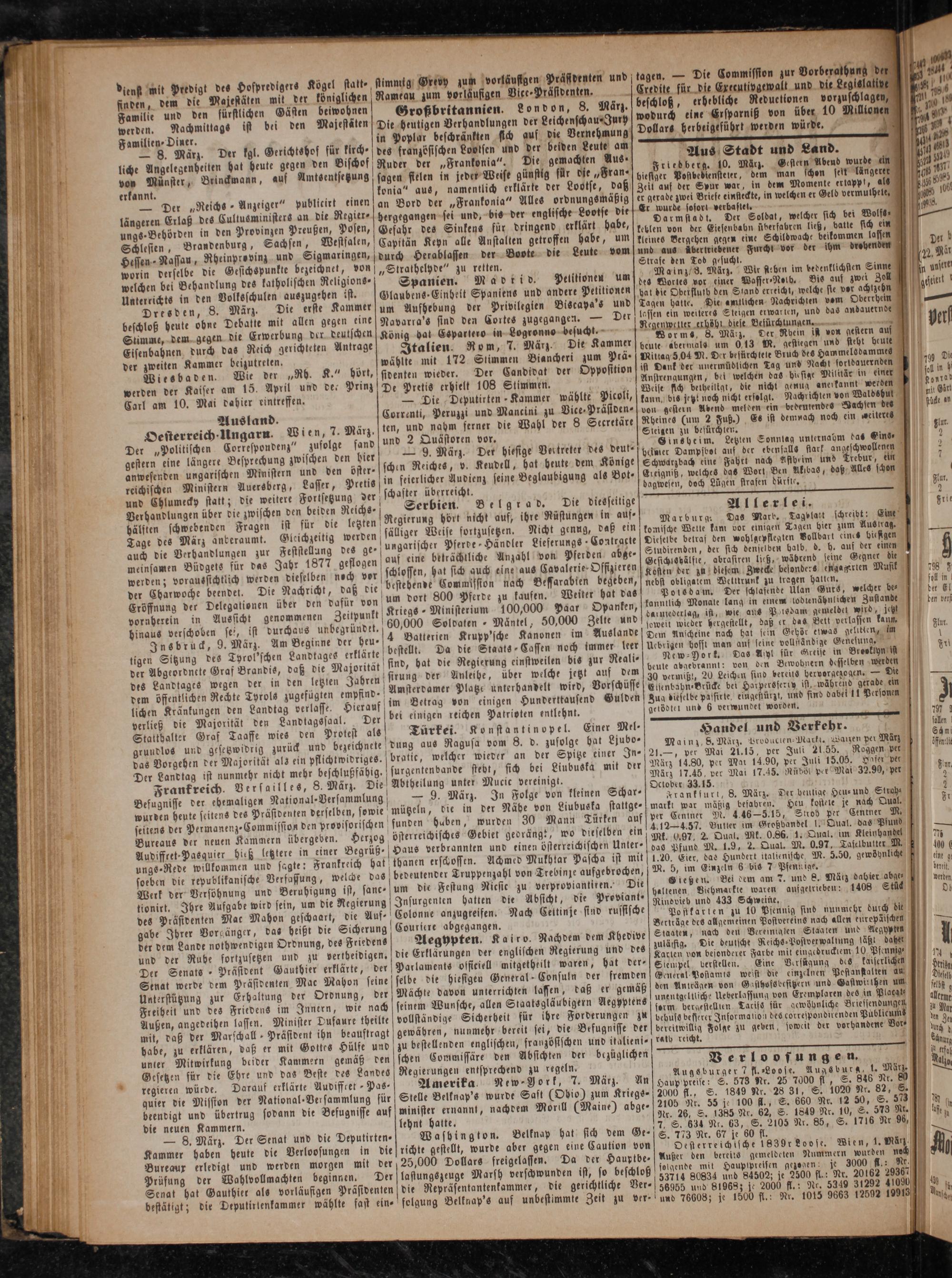 Frankreich. Versailles, 8. März. Die Abtheilung unter Mucie vereinigt. Befugnisse der ehemaligen National-Versammlung,— 9. März.