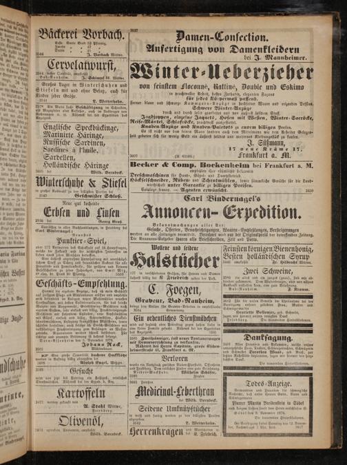 L. Wetterhahn. 15 Die Beerdigung findet Sonntag den 12. Novem- ber, Nachmittags 2 Uhr, statt. 3617