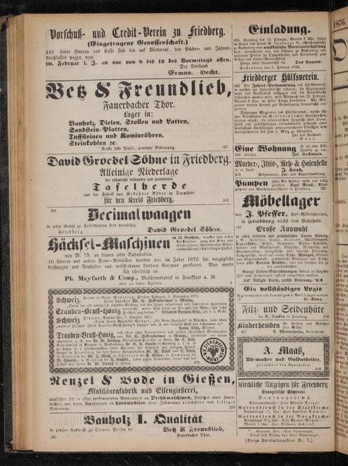 in jeder Größe zu Fabrikpreisen stets vorräthig. Friedberg. David Groedel