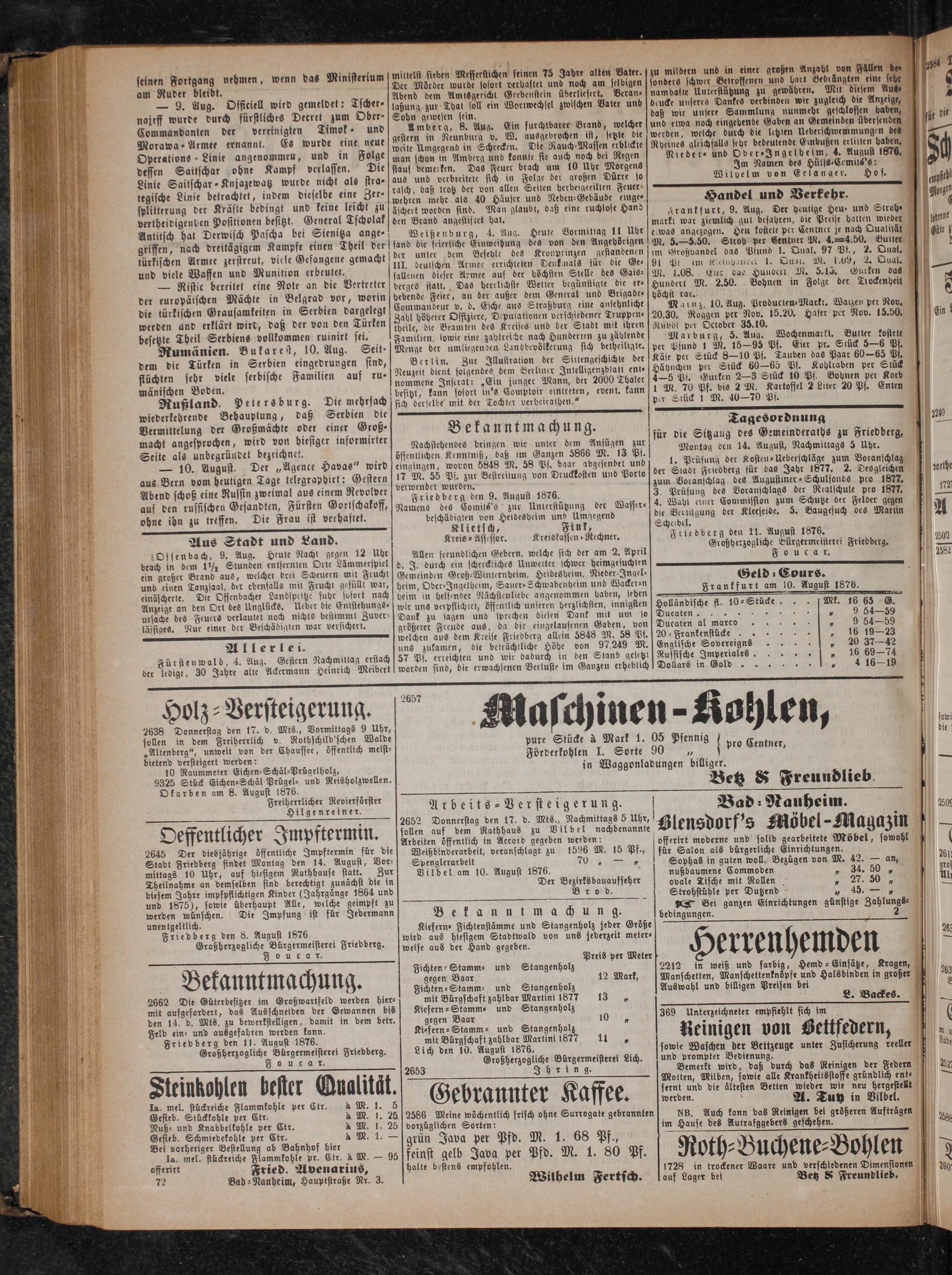 werden wünschen. Die Impfung ist für Jedermann unentgeltlich. Friedberg den 8. August 1876 Großherzogliche Bürgermeisterei Friedberg. Foucar.
