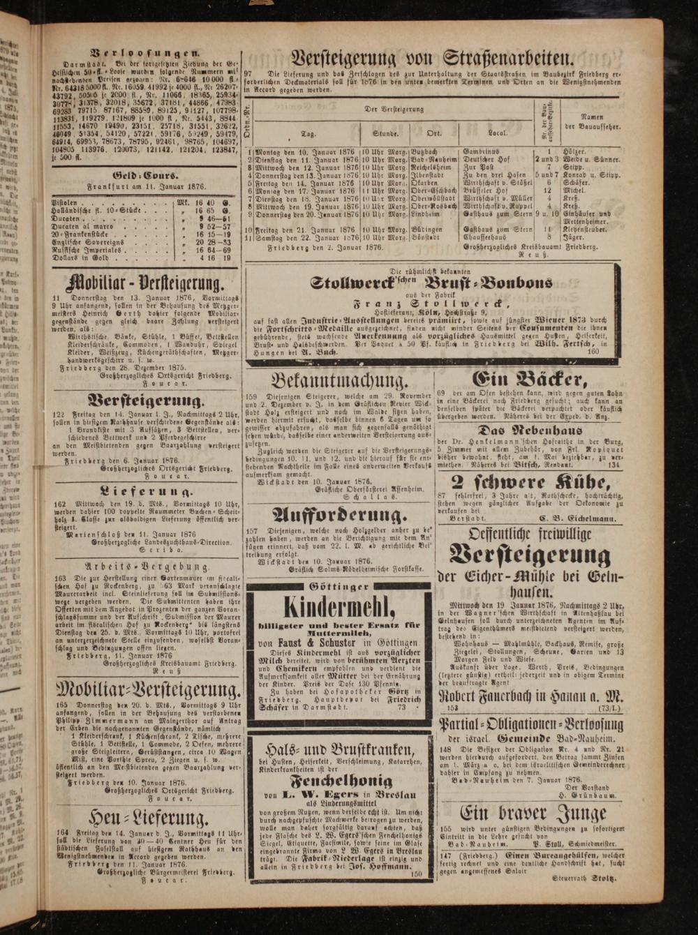 Friedberg den 11. Januar 1876. Großherzozliche Bürgermeisterel Frtesberg.