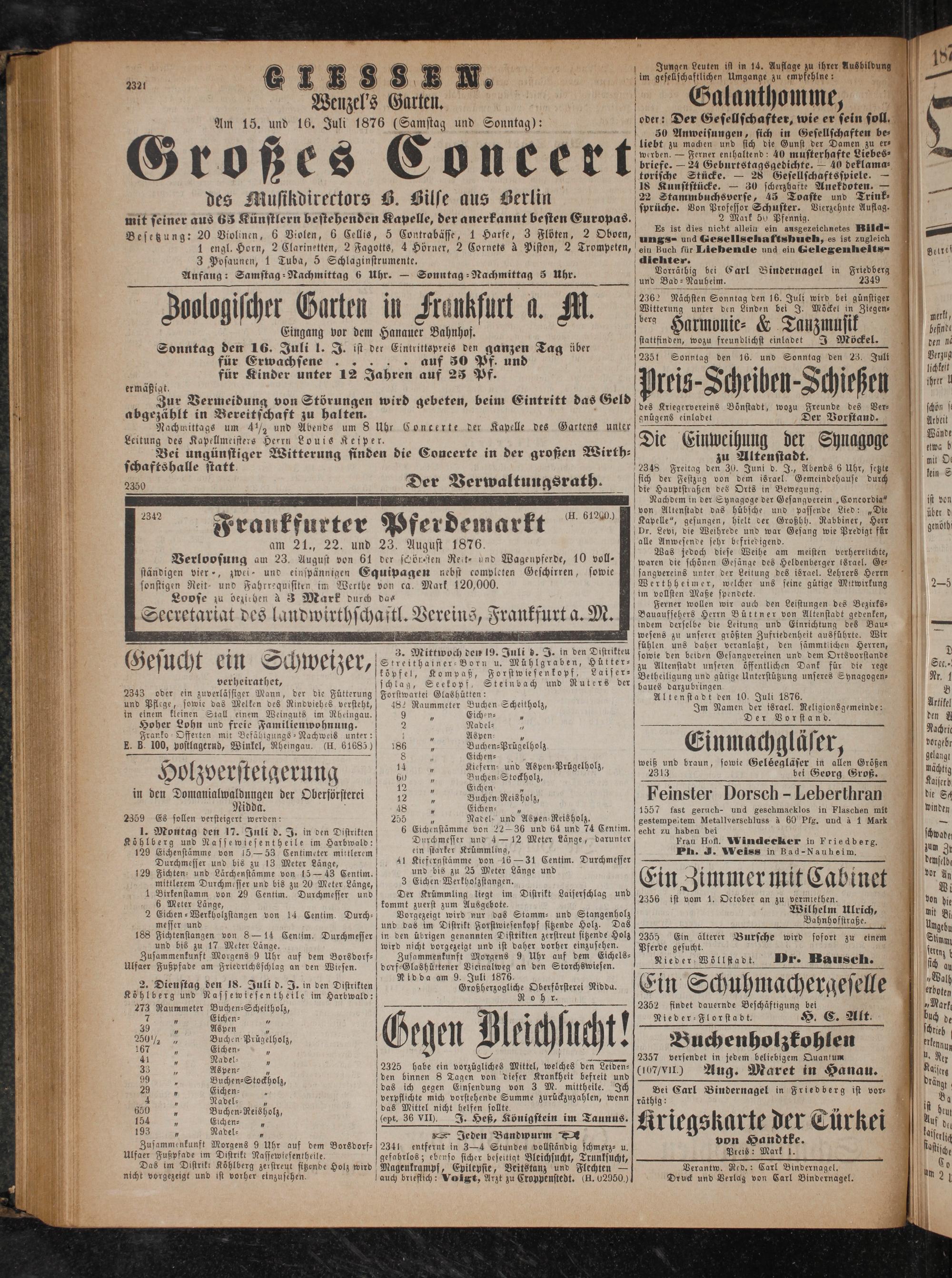Verantw. Red.: Carl Bindernagel. Druck und Verlag von Carl Bindernagel.