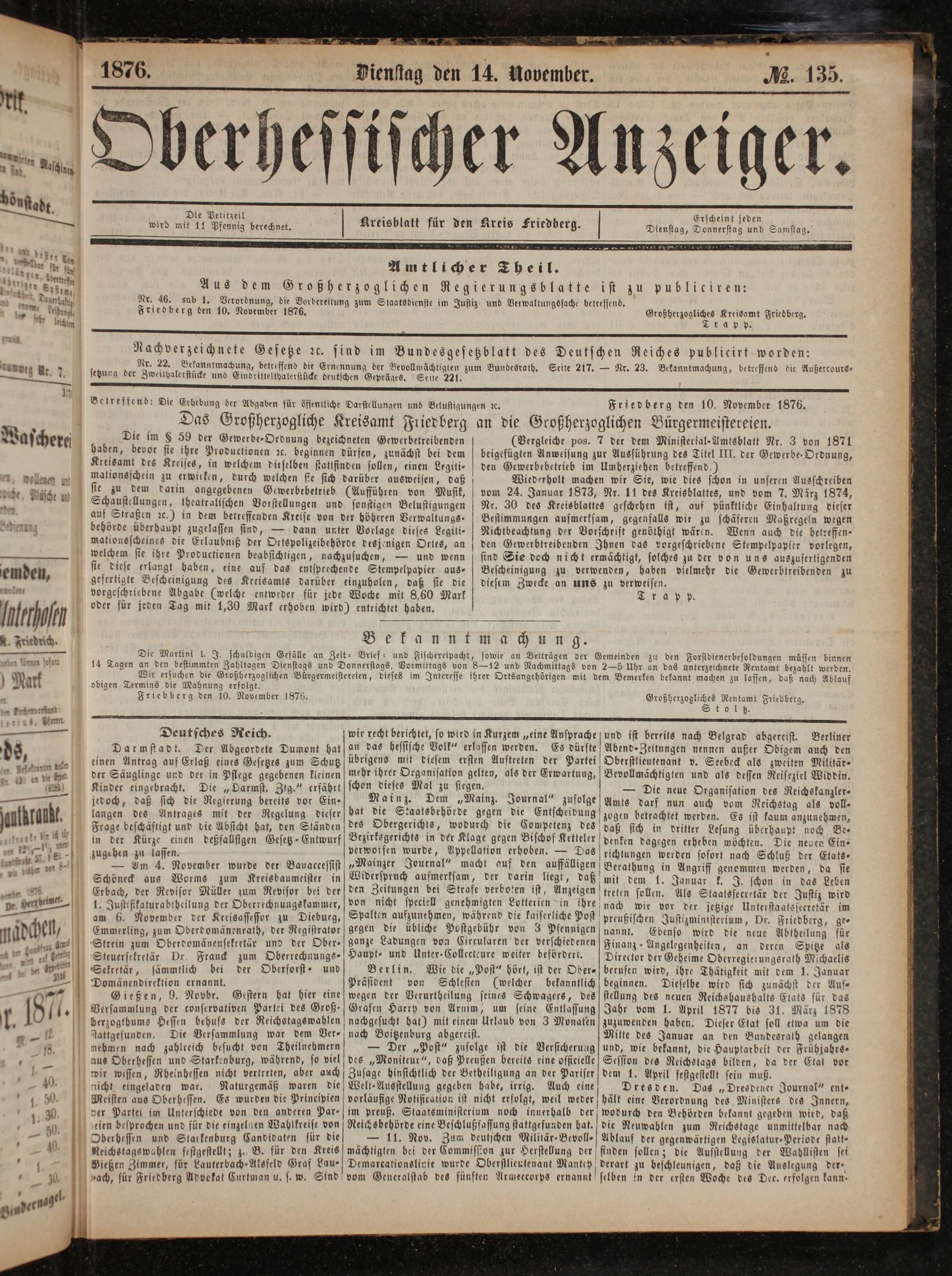 Friedberg den 10. November 1876.