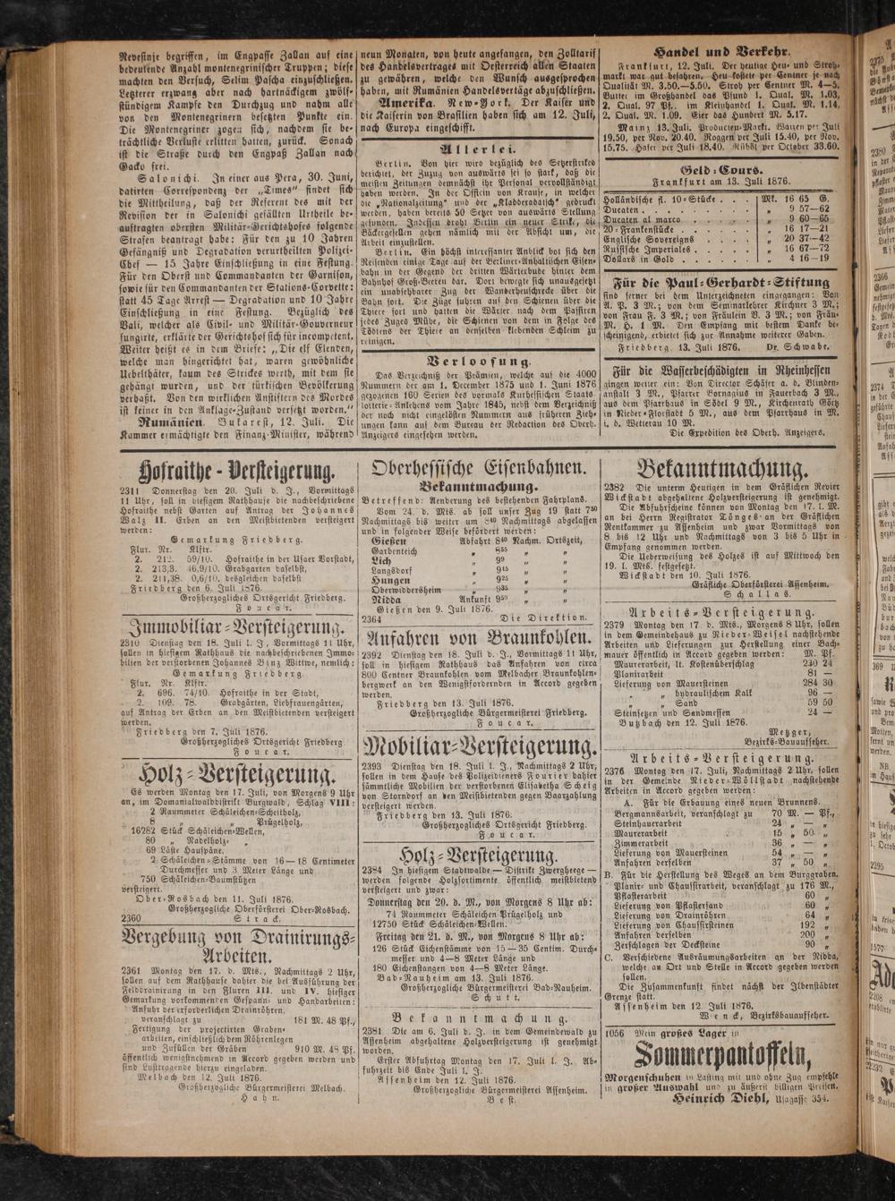 auf Antrag der Erben an den Meistbietenden versteigert werden. Friedberg den 7. Juli 1876. Großherzogliches Ortsgericht Friedberg Fou car.