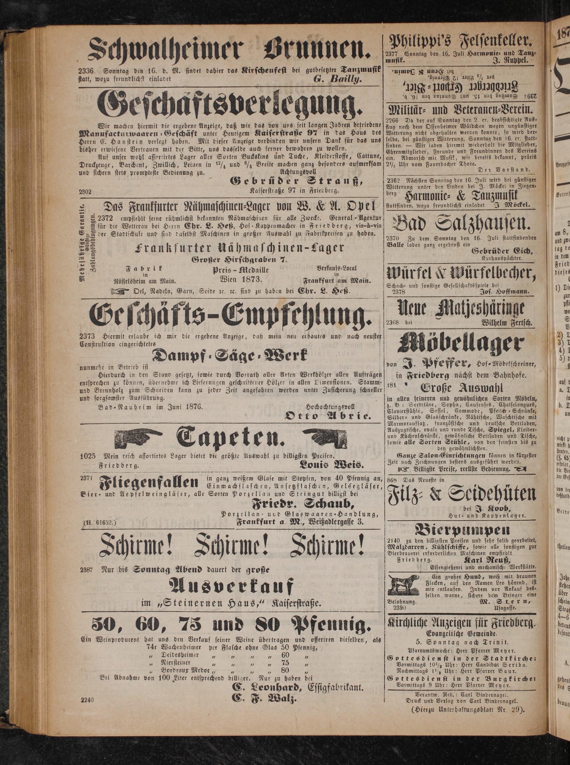 Kirchliche Anzeigen für Friedberg. Evangelische Gemeinde. 5. Sonntag nach Trinit. Pfarramtswoche: Herr Pfarrer Meyer.