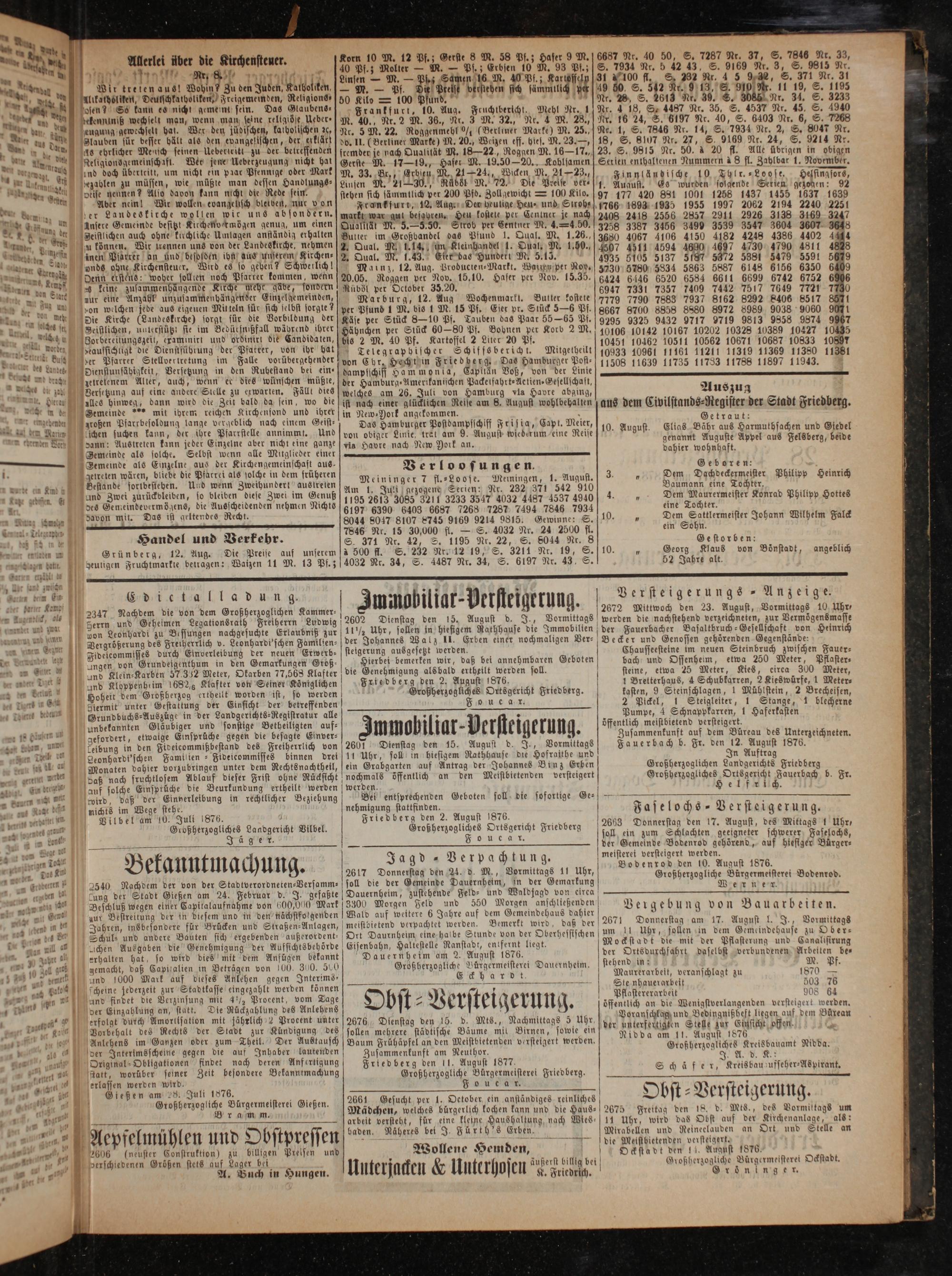 Friedberg den 2. August 1876.