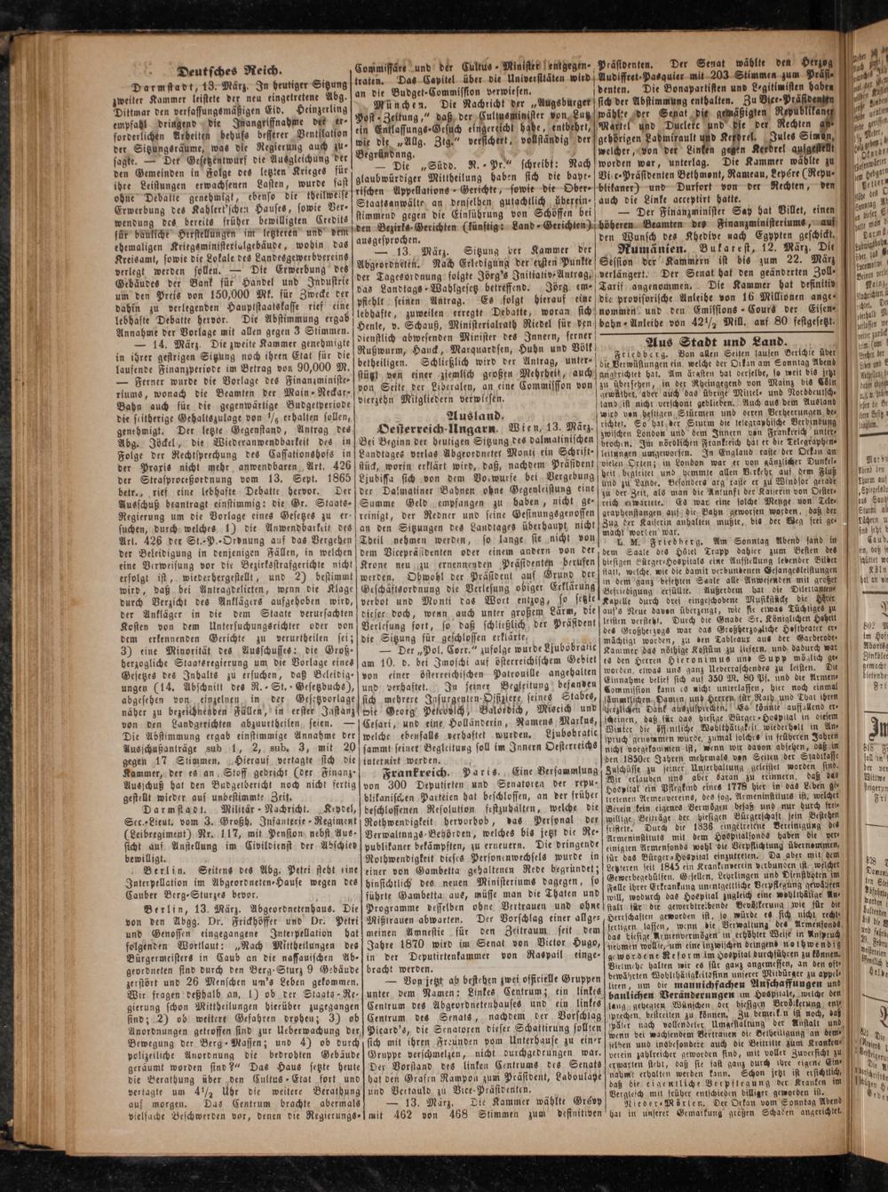 ausgesprochen. — 13. März. Sitzung der Kammer der Abgeordneten. Nach Erledigung der ersten Punkte
