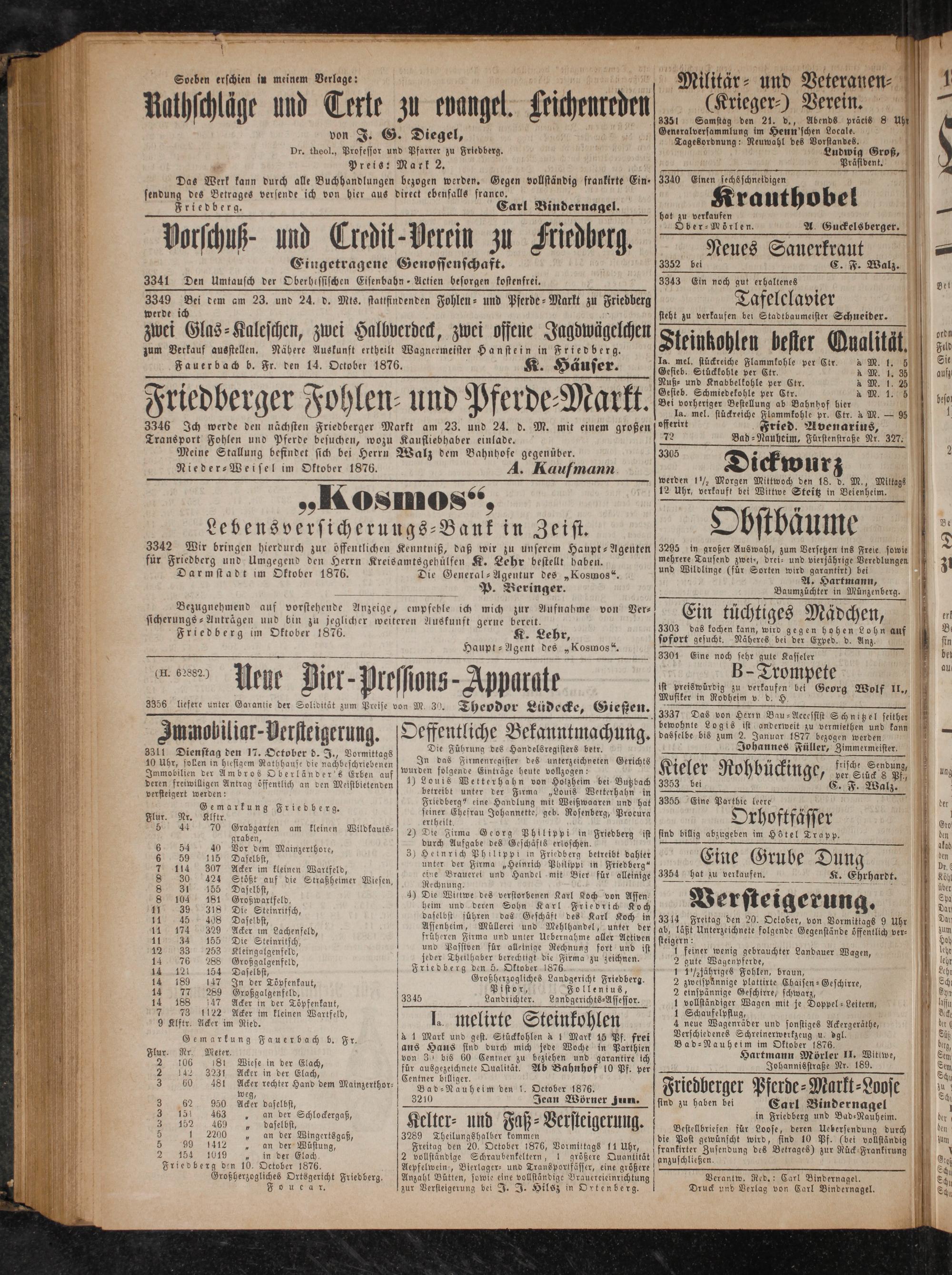 Friedberg den 10. Oetober 1876. Großherzogliches Ortsgericht Friedberg. 5