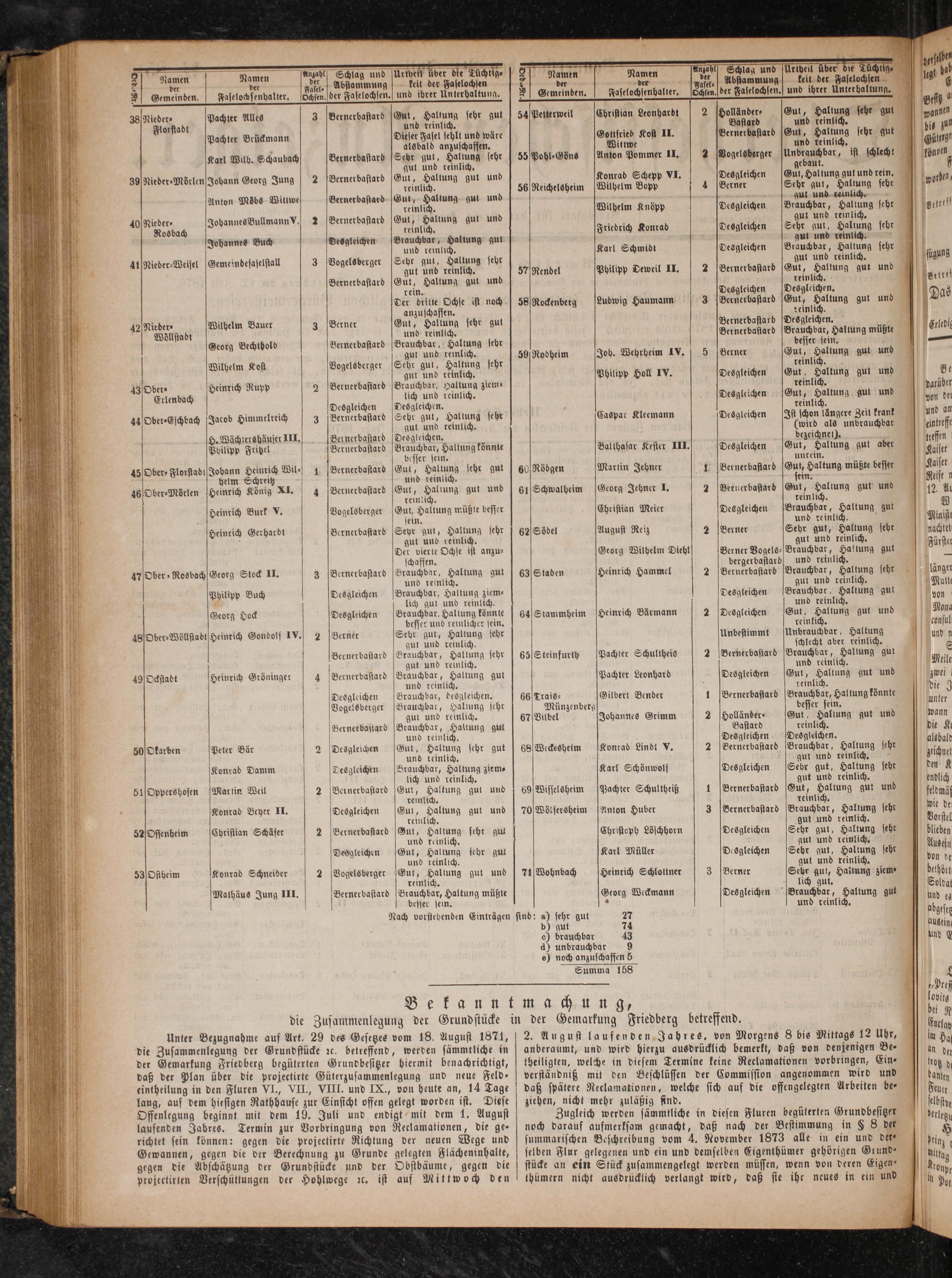 Bie ka n k m g chan n. die Zusammenlegung der Grundstücke in der Gemarkung Friedberg betreffend.