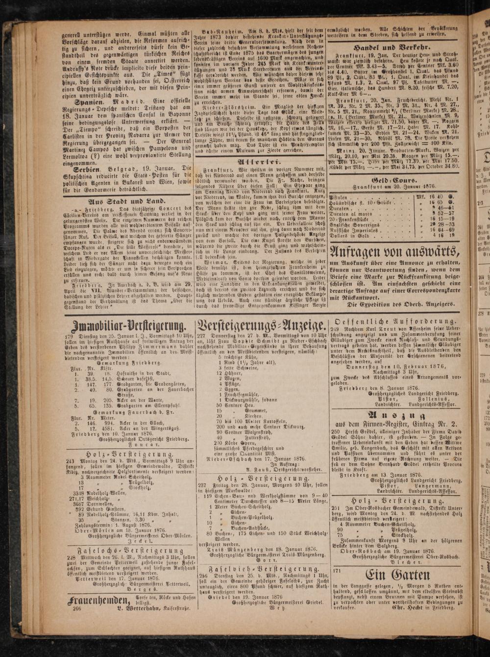 Friedberg den 10. Januar 1876. Großherzogliches Ortsgericht Friedberg. Foune ad