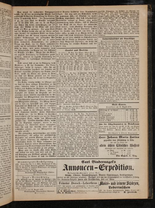 Frankfurt am 22. August 1876. Holländische fl. 10-Stücke. Mk. 16 65 G. Ducaten.„ e 5 9 54—59 Ducaten al mareo. 75 9 56—61 20 Frankenstücke 5„ 16 19-23 Englische Sovereigans s„ 20 37—42 Russische Imperiales„ 16 69—74 Dollars in G 5 416-19