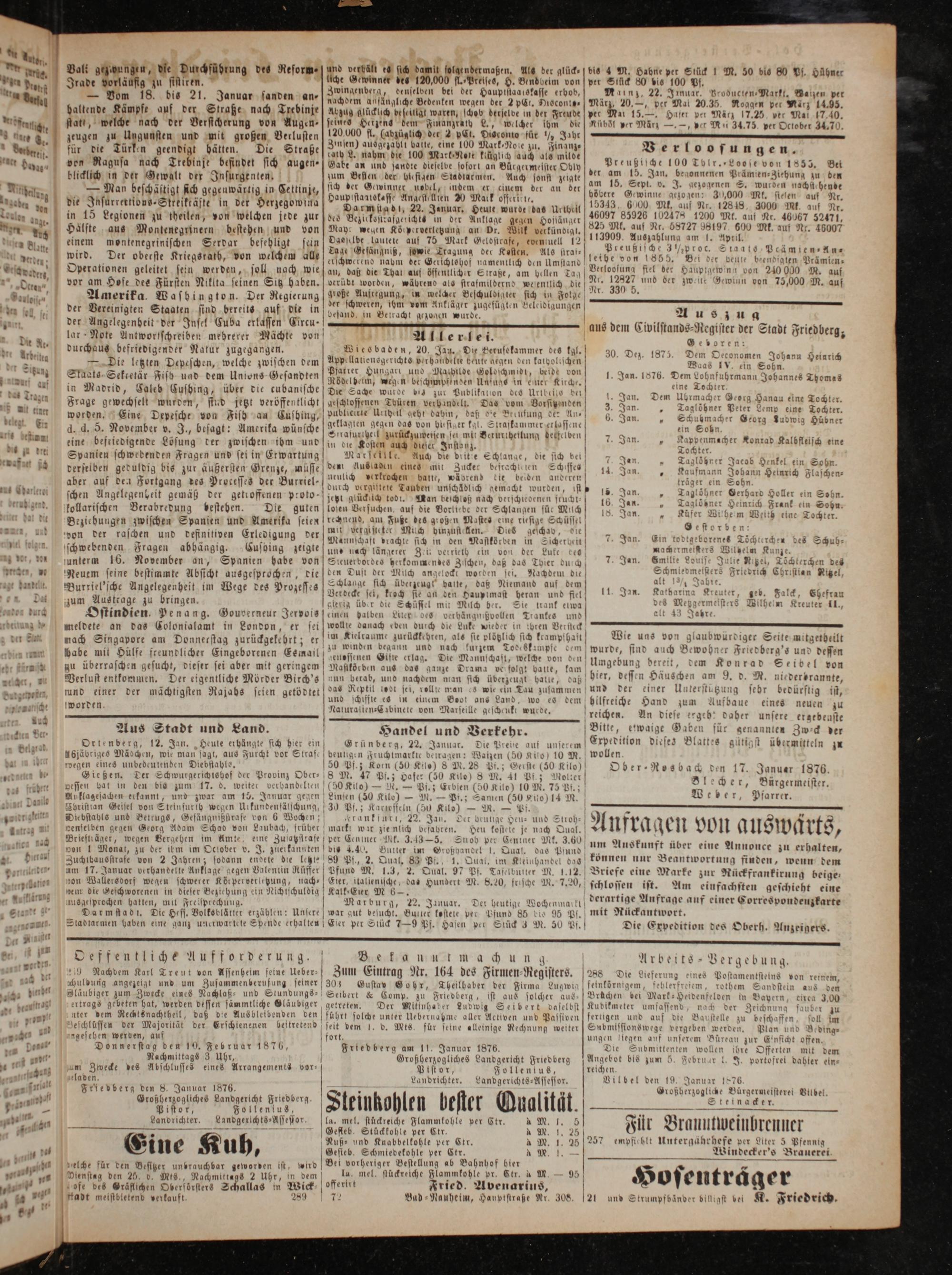 1. Jan. 1876. Dem Lohnfuhrmann Johannes Thomas eine Tochter.