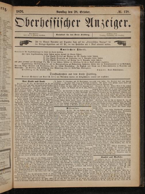 Für die Monate November und Dezember kann auf den„Oberhessischen Anzeiger“ bei der Verlags-Expedition mit 67 Pf., bei den Poststellen mit 1 Mark abonnirt werden.