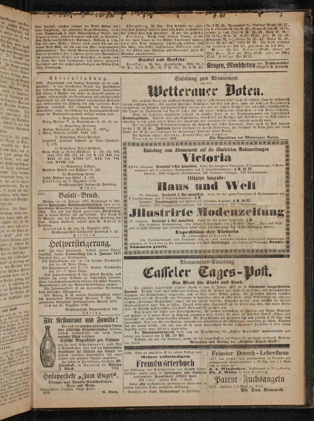 46, Lützowstrasse in Berlin W. 85 und Postämter des In- und Auslandes nehmen jederzeit Bestellungen entgegen, in Friedberg die Buchhandlung von Carl Bindernagel, und liefern auf Verlangen Probe-