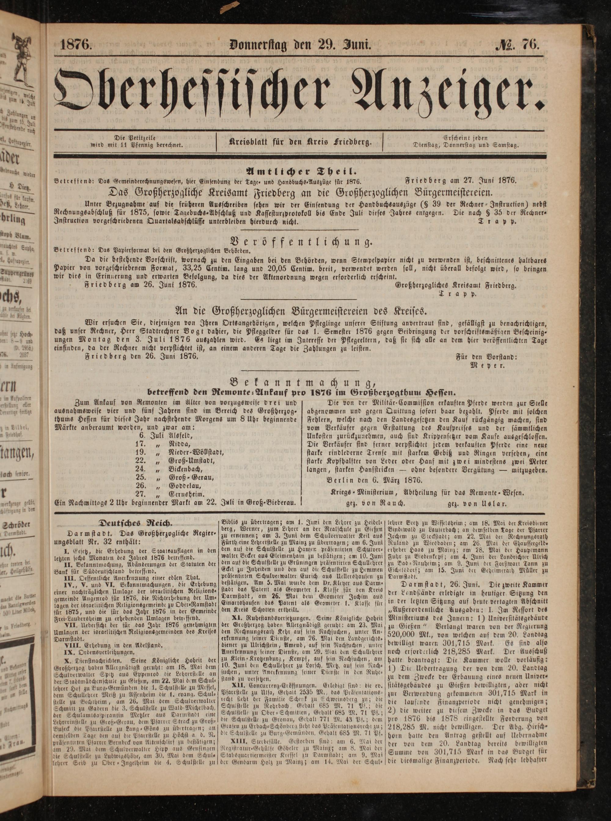 betreffend den Remonte⸗Ankauf pro 1876 im Großherzogthum Hessen.