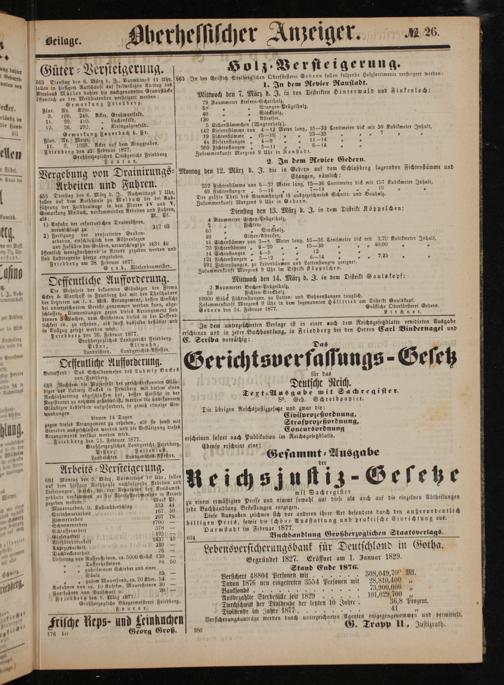 Friedberg den 22. Februar 1877. Großherzogliches Ortsgericht Friedberg Fouca r.