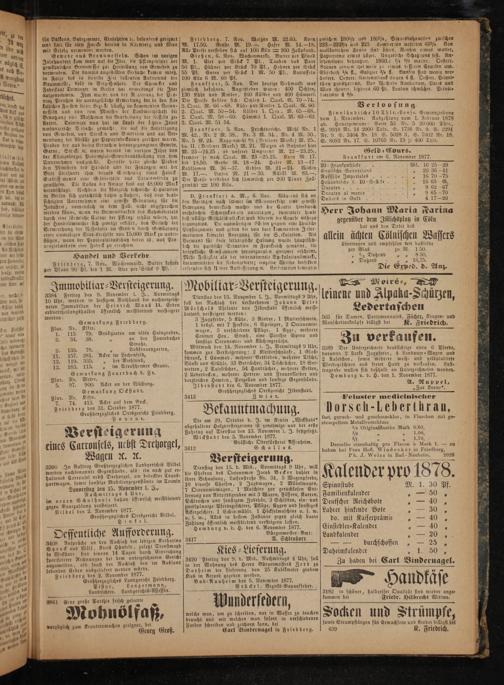 3389 Der Unterzeichnete beabsichtigt eirea 6 Pferde, darunter 2 starke Zugpferde, 4 Landauer-Wagen und 2 Kaleschen, sowie mehrere weiß- und gelbplattirte Pferdegeschirre aus freier Hand zu verkaufen. Lust⸗ tragende wollen sich deßhalb an Unterzeichneten wenden. Homburg ev. d. H. den 1. November 1877. A. Ruppel,