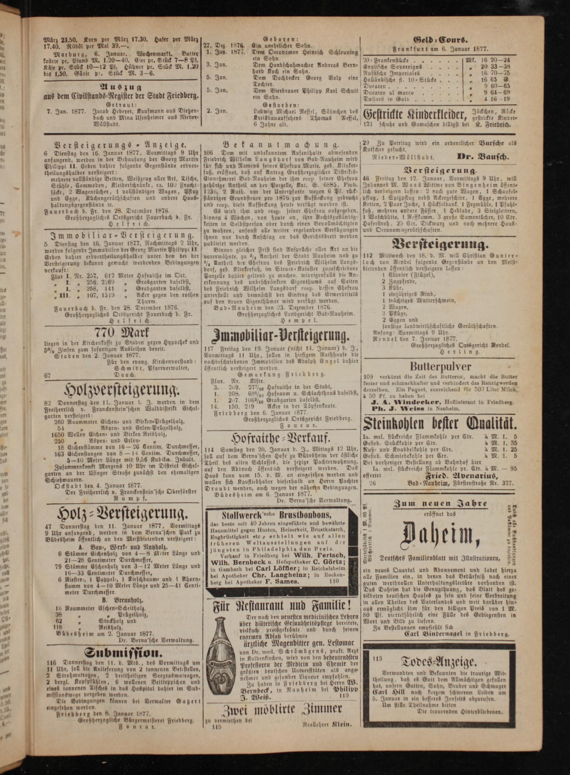 Friedberg den 8. Januar 1877.