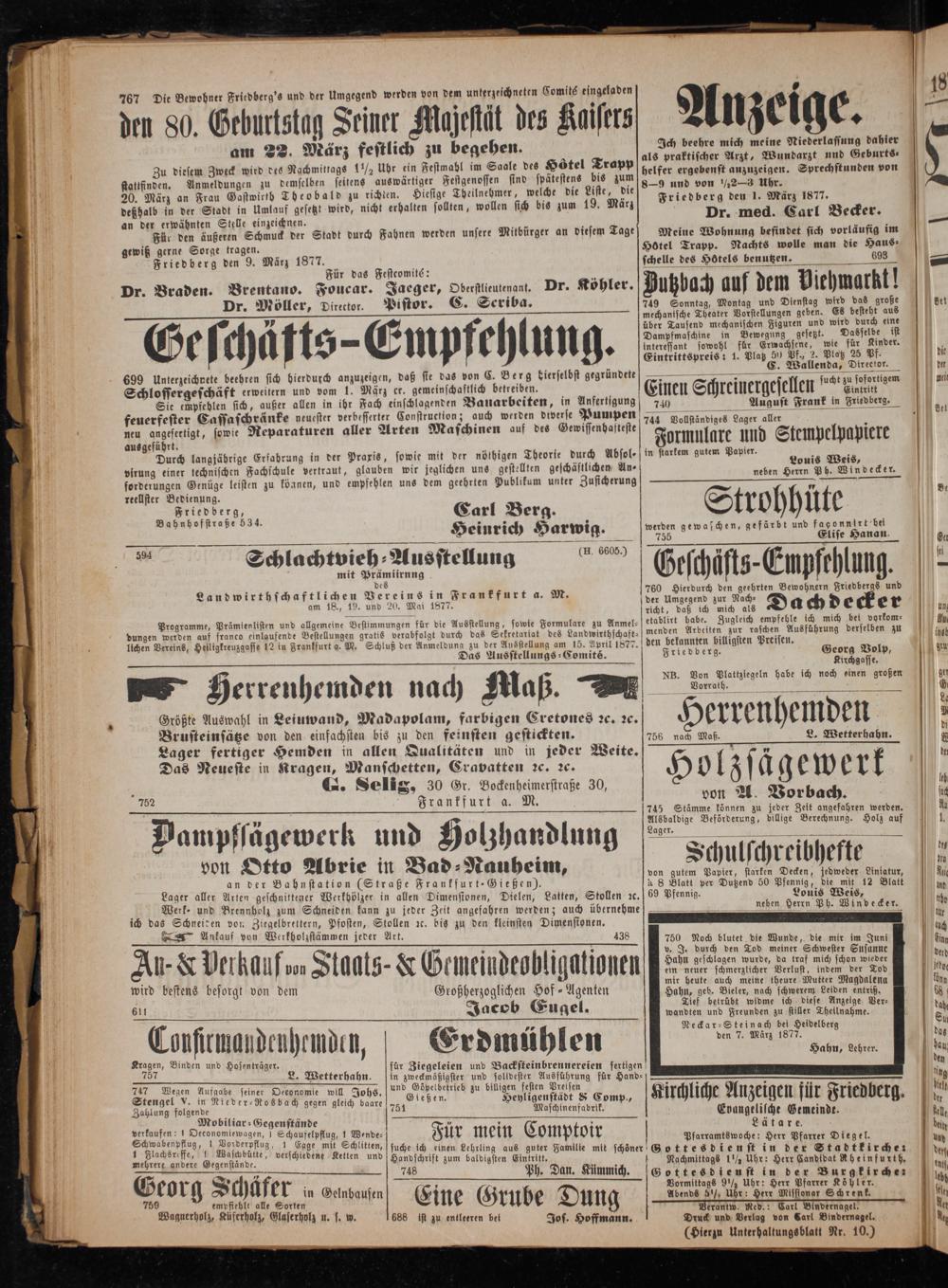 760 Hierdurch den geehrten Bewohnern Friedbergs und