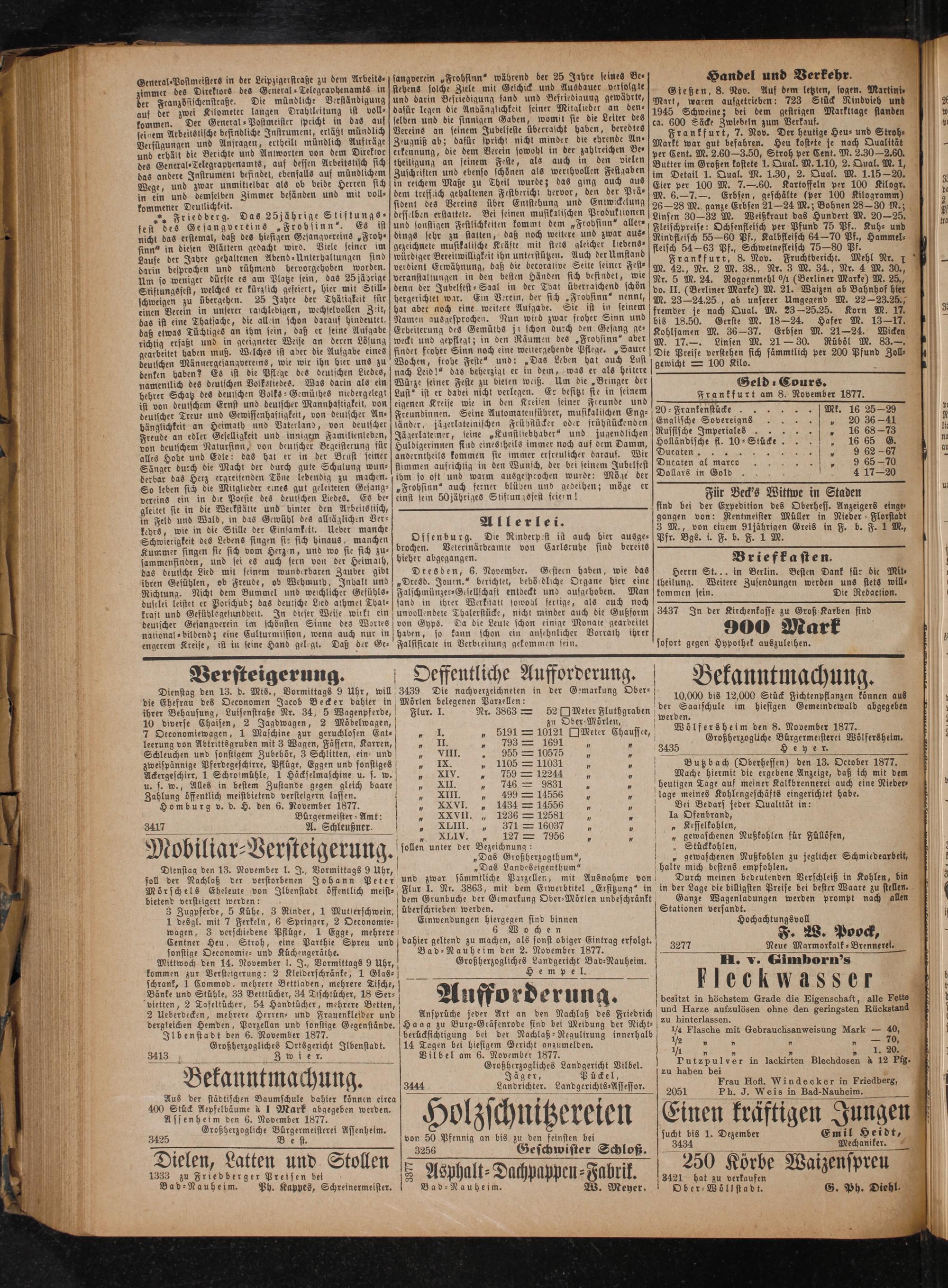 u. s. w., Alles in bestem Zustande gegen gleich baare Zahlung öffentlich meistbietend versteigern lassen. ö Homburg v. d. H. den 6. November 1877. Bürgermeister⸗Amt: A. Schleußner.