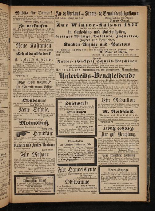 billigst ausgeführt. A. Spier& Söhne, 3394 Kaiserstraße, gegenüber dem Hötel Trapp.