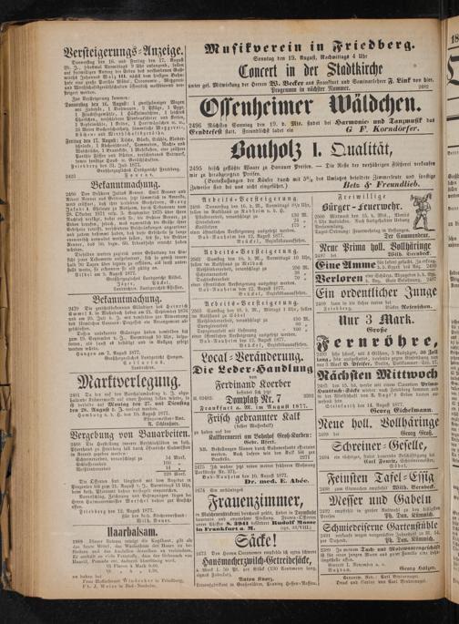 Friedberg den 31. Juli 1877. Großherzogliches Ortsgericht Friedberg. Fou c a r.