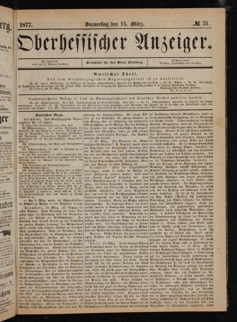 — Am 2. März wurde der Gymnasiallehrer ersteben. Dr. Schmidt zu Gießen in den Ruhestand versetzt. 13. Sitzung der