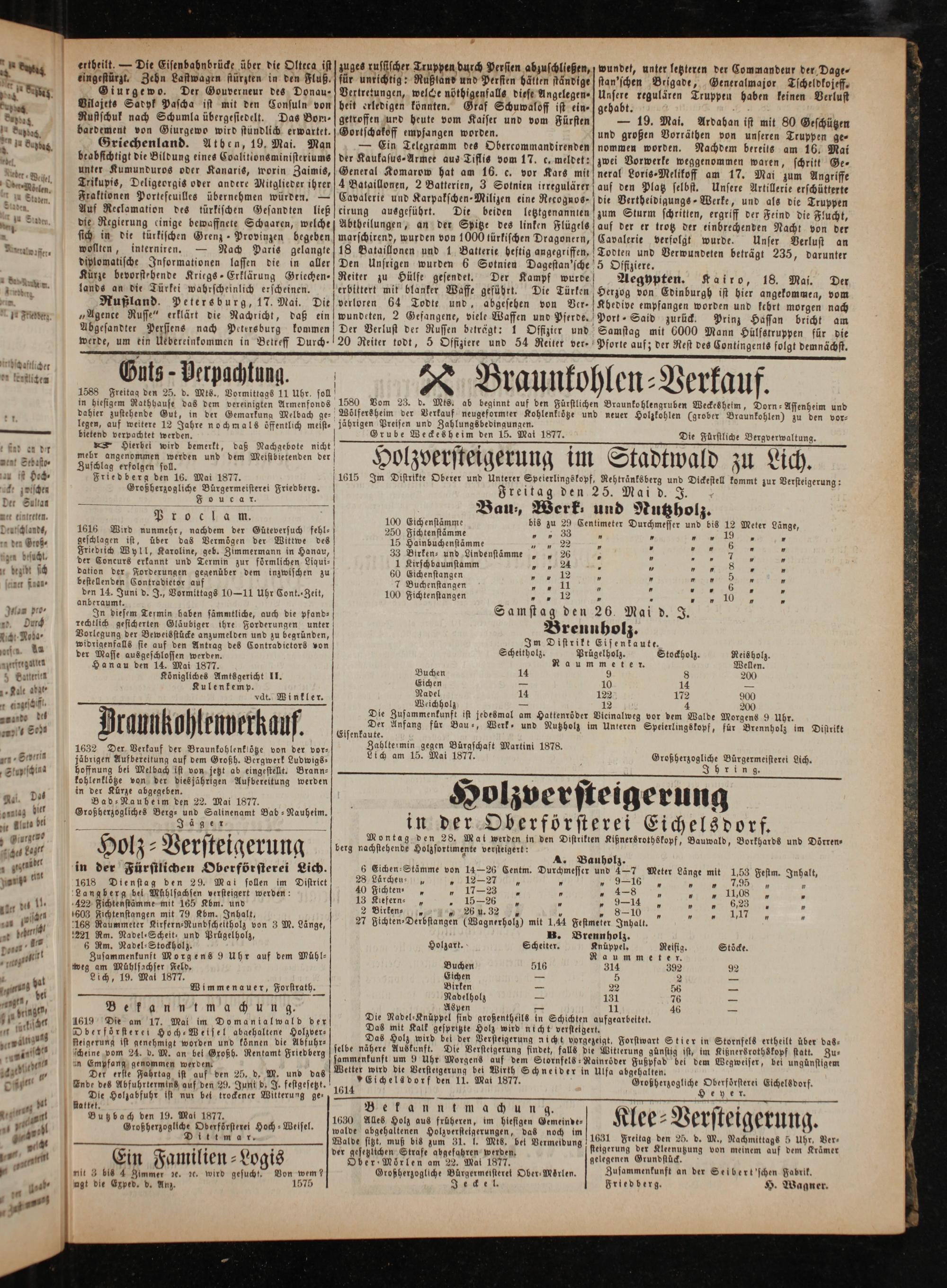 Wölfersheim der Verkauf neugeformter Kohlenklöͤtze jährigen Preisen und Zahlungsbedingungen. Grube Weckesheim den 15. Mai 1877.