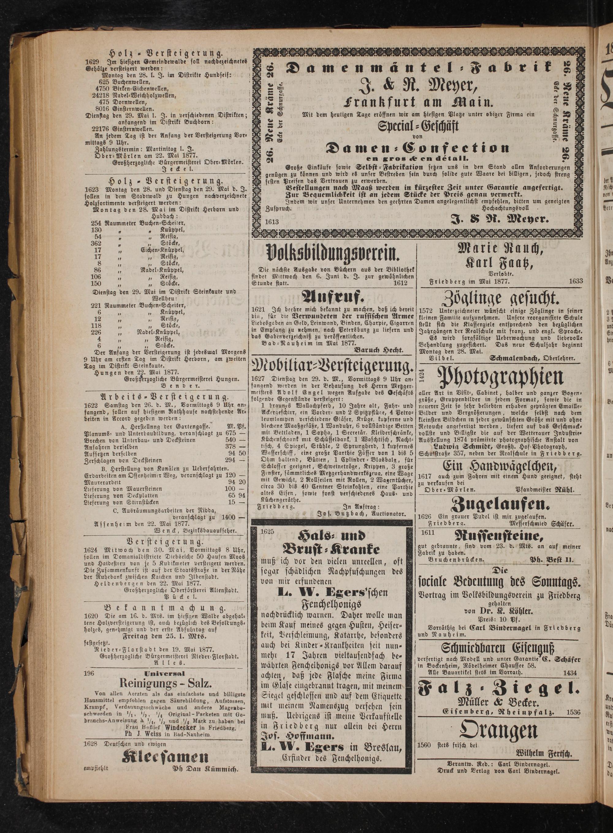 mittags 9 Uhr. Zahlungstermin: Martinitag l. J. Ober-Mörlen am 22. Mai 1877.