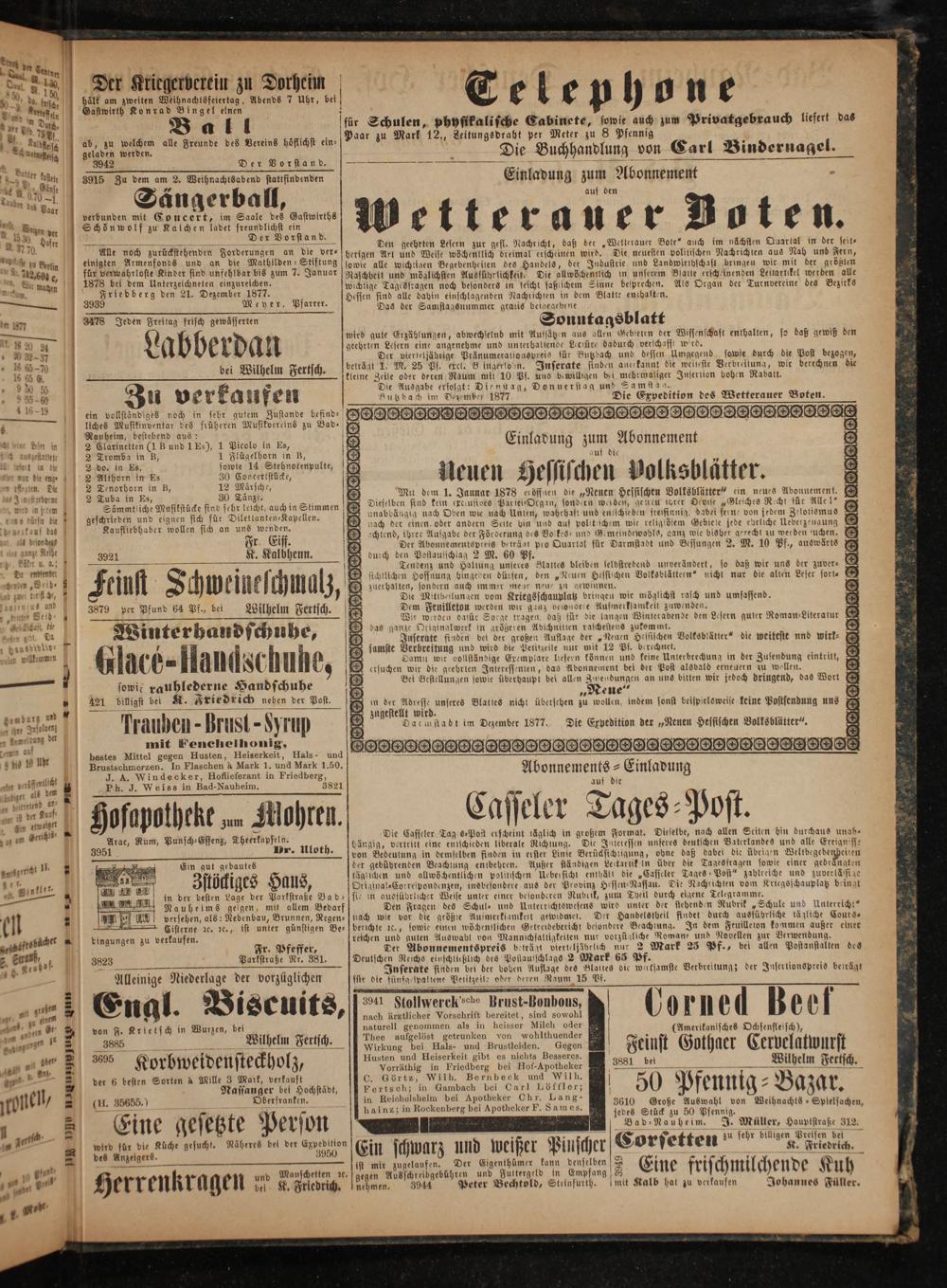 Dacustadt im Dezember 1877. 5 SSS Sees SSS Abonnements-Einladung