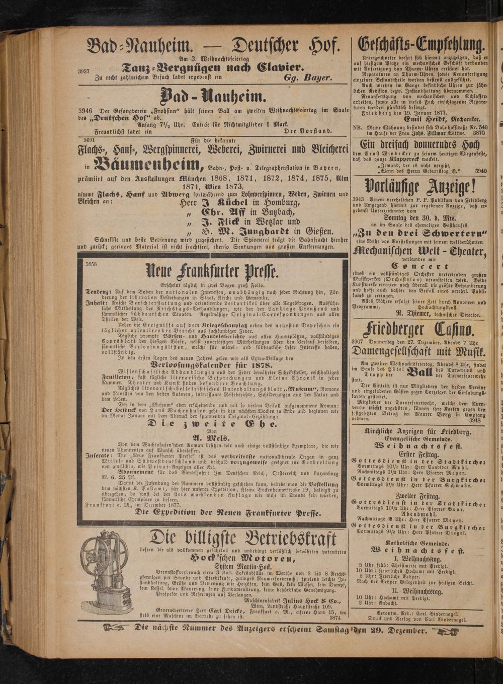 Die nächste Nummer des Anzeigers erscheint Samstag den 29. Dezember, N
