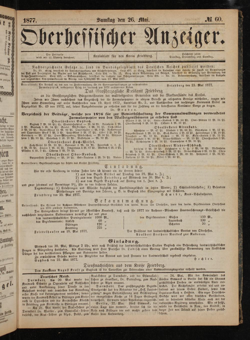 Friedberg den 23. Mai 1877.