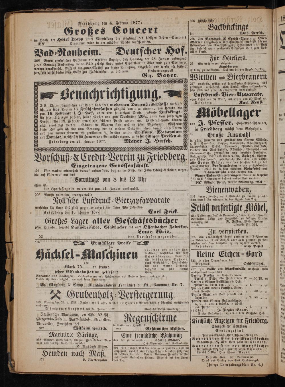 empfeblen sich ihrer Billigkeit wegen besonders für kleine Wirthschaften. Friedberg den 16. Januar 1877. Carl Frick.