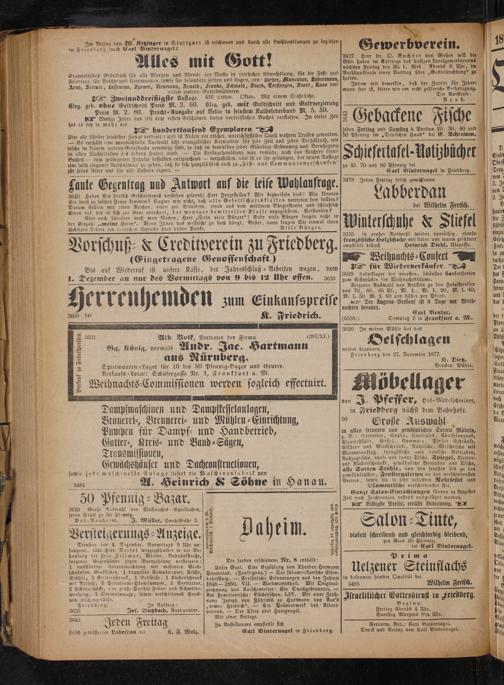 zu 45, 70 und 90 Pfennig bei Carl Bindernagel in Friedberg.