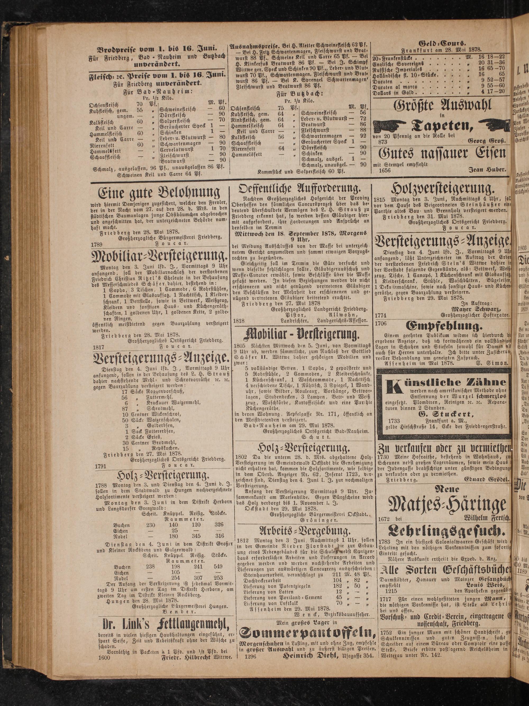 Friedberg den 27. Mai 1878. i Großherzogliches Ortsgericht Friedberg.