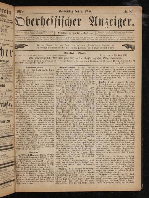 Friedberg den 29. April 1878
