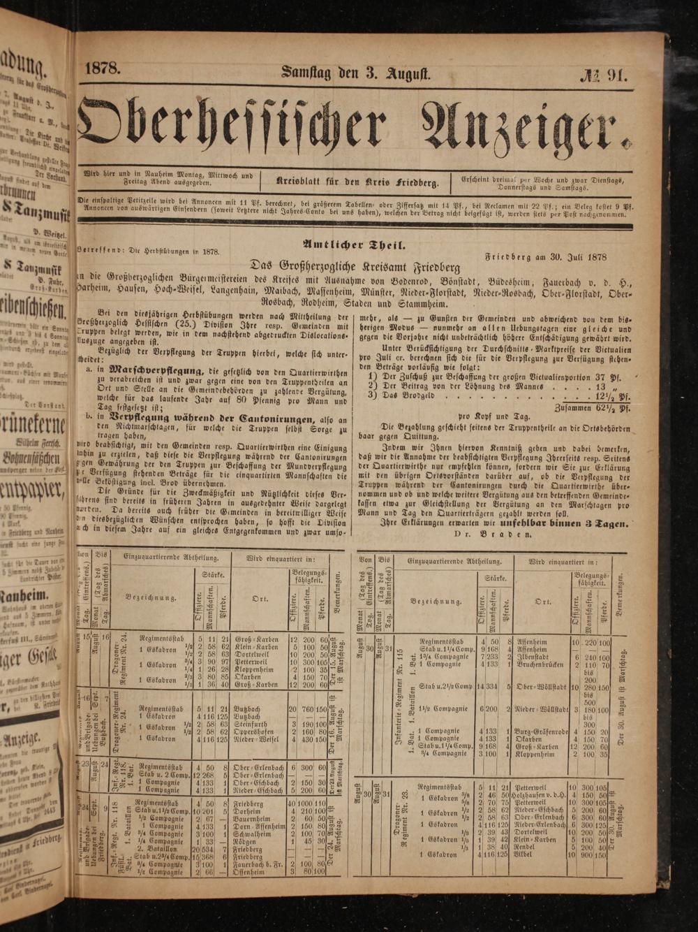 Einzuquartierende Abtheilung. Wird einquartiert in: Von Einzuquartierende Abtheilung. Wird einquartiert in: 122 2 7 Sr deen,„ TS 2 505 fähigkeit. 5 fähigen. 85 N 2 5 2 8 5 S585 38 23 2 8 5 Bezeichnung. 1 Ork. 2 2 2 8— 8(—5 Bezeichnung. 2 2 Ort 2 2 8 E 1 n S S 2 2 88 E 55 85 4 5 8. 5 6 5 88 S 2. 8 8 SIe 11 8 E 1%%& Megimentsstab 5 1124 Groß⸗Karben 12 200 60%„ S Regimentsstab 450 8 Assenheim 10220 100 5 5 8.8 1 Eskad ½ 2 58 62 Klein-Karben 5 100 50 S 5 301 8 31ʃ 5 Stab u. 1½ Comp.] 9168 4 Assenheim——— 1 2 58 adron ½ 2 58 63 Dortelweil 10 200 50% S SU= 2 1% Compagnie 7233 24 Ilbenstadt 60240 100 8 5 1 Eskad 974 3 90 97 Petterweil 10 3001058 8 3 1 Compagnie 4.133,( Bruchenbrücken[2 110 70— G adron ½ 1, 260 280 Kloppenheim 2 100 3588 e bis 8 ( LEskadron 7 3 80 88 Okarben 5 1500 700 S n. 200 2 8 Wkadron ½ 1 36 40] Groß ⸗Karben 12, 200 60e S 5 Stab u. 2½ Comp.14 334 5 Ober-Wöllstadt 10 280 1500 S 2 1 20 5 E bis— 14608 70 8 5 F 500 8 8 0 ö 8 ö 5 e ö 1 ö 5 5 D 5 S 5 gRegtmentsstab 5 11 21] Butzbach 20 76001508 55 2 8 1½ Compagnie og 24 Nieder- Wöͤllstadts 3 70 1000 S 22[8 1 Eskabron 416125 Vuß bach 8 0 ene 30⁰ 8 — 1* 4 7 2 U 2 S 1 8 1 2 ö— 1* 9 e 88 8 85 1 Eskadron 1 3 2 5 Se 2 100 800 8 5 1 Compagnie 41330 1 Burg⸗Gräfenrodef 4 150 20— 1 2 2 3 0— 0 5 8 5 1149 5 7— i( stabron 416/125 Nieder ⸗Weisel[4 430 150 e ee e e n 3 2 2888 8 Stab u. 1½¼ö 0 omp.] 91680 4 Groß⸗Karben 2 200 60 25 2 65 7 Compagnie 3,100, 1 Kloppenheim 2 100, 35 * 0 1 0 ö 1— 0 1 2 S ö ö 238.24 2e Negimentsstab 4 50 8 Ober⸗Erlenbachs 6, 300 60 8 8 3 FEN 23 u. 2 Comp. 12 268 5 Si ee 2 5 70 8 8 7 „ ompagnle 4.133 1 Ober⸗Eschbach 2 450 30 S 8 le Regimentsstab 5 11 21 Petterweil 10 300,05. 2 oenzagne I 4.1331 1 Nieber-Cschbach I 5 200] 601 f. 2 800 8881 8 955 f 9782 0 500Holzhausen v. d. H. 4 150 50058 1 37 N 8 8 1 Eskadron ½ 2 70, 75, Pelkerweil 10 300405, — 18 Regimentsstab 4 500 81 Friedberg 40.100040 8.8 10 58 62J Nieder⸗Eschbach[ 5 200 6088 2a 9= S Stab u. 11 0 5 4 2104005 58 1 Eskadron ½ 2 58 62 Nieder Eschbach 5 200 89088 2405* 1 b. Comp. 10 20 5 Dorheim 4 1 0 88 Aökadrog 2 58, 69] Ober⸗Erlenbach 60 300 6005 ö 3 3„ Compagnie 2 67— Vauernheim e 800 8 85 8 1 Eskadron 44460125, Nieder-Erlenbach. 9 300 425 8 2„ 81 Compagnie 4% 1 Dorn Assenheim 2 150.8 3 8 6.5 1 2039 43 Dortelweil 10 200 508 85 23 2 2 80/ Compagnie 9.109 1] Schwalheim 5 20 90 e ee 1 390 42J Klein⸗Karben 50 100 50,8 i Kompagnie 1, 3— Rödgen 11 4⁵ 88 85% 1 38 40 Rendel 5, 200 40se5 2 5 2. Batalllon 20534] 7] Friedberg I 1 Eskadron 416125 Vilbel 10 900,450 e Stab u. 2% Comp. 15/68 6 Friedberg 3 1 Se% Compagnse 3100 1 Fauerbach b. Fr.] 2 100. 80 18 8 5˙⁰ ½ Compagnse 2 66— Ossenheim 380.100—