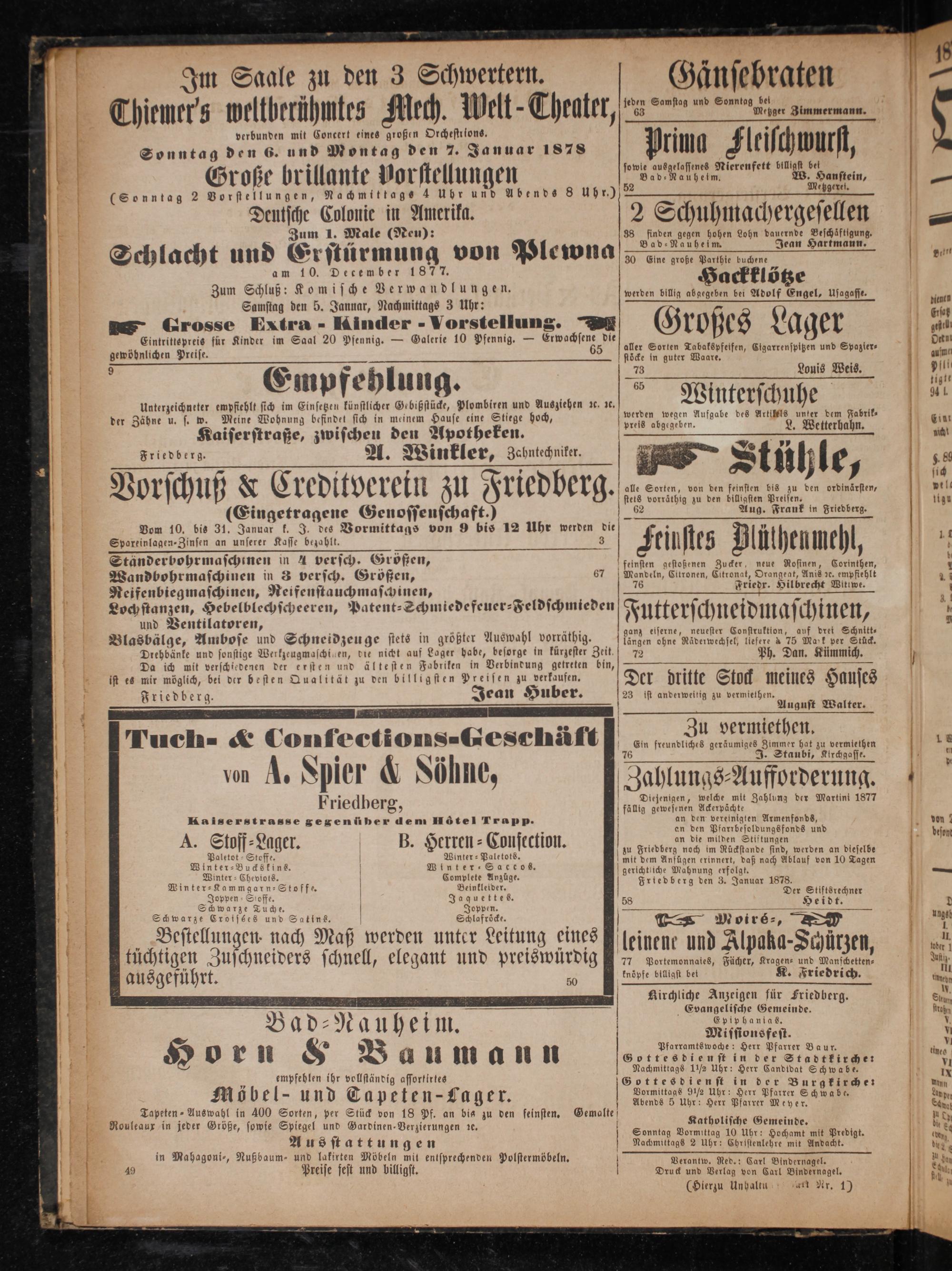 Druck und Verlag von Carl Bindernagel. (Hierzu Unhaltu et Nr. 1)