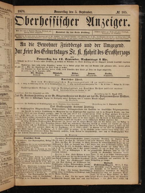 An die Bewohner Friedbergs und der Umgegend. ur geier des Geburtstages Sr. K. Hoheit des Großherzogs