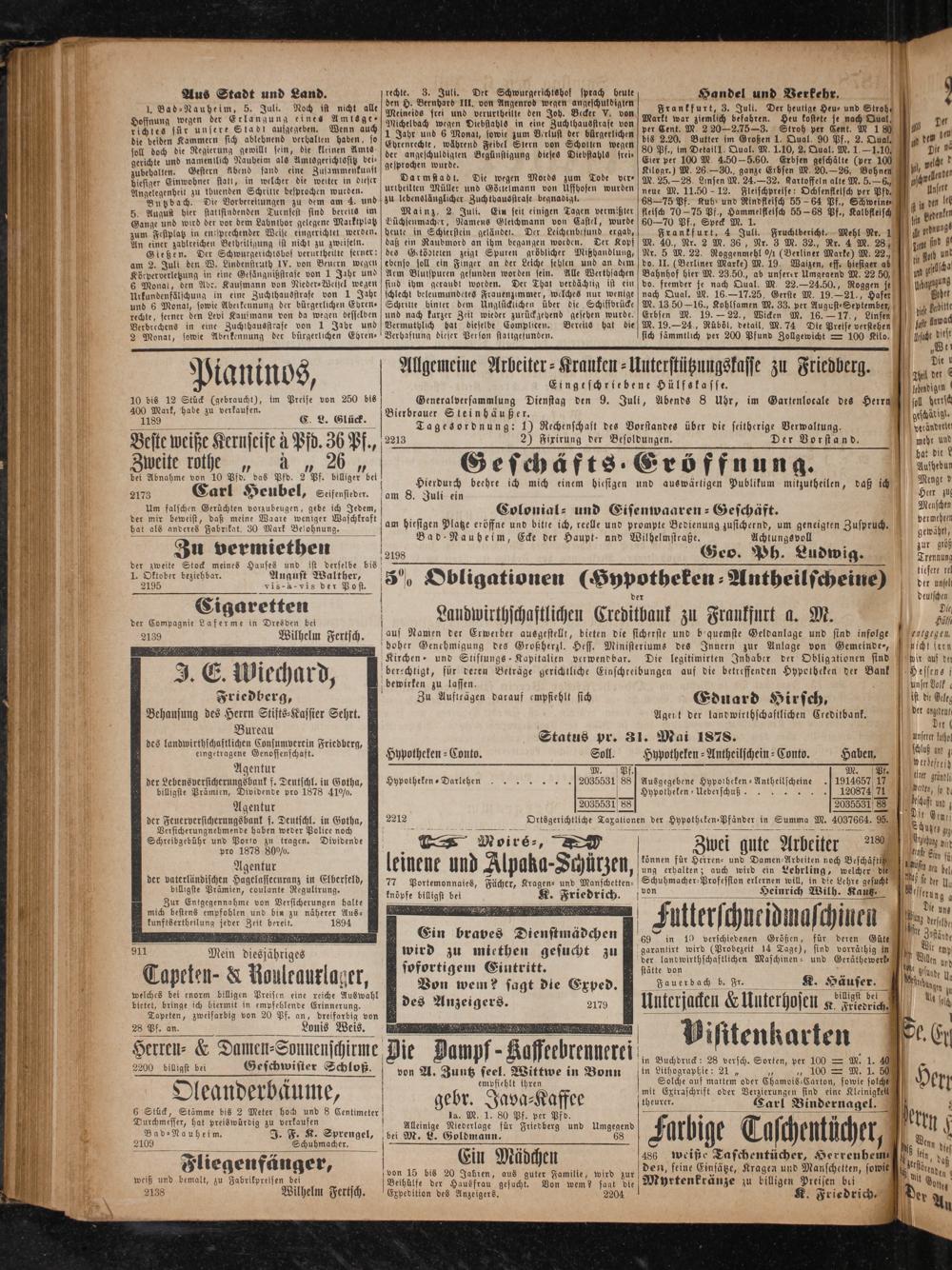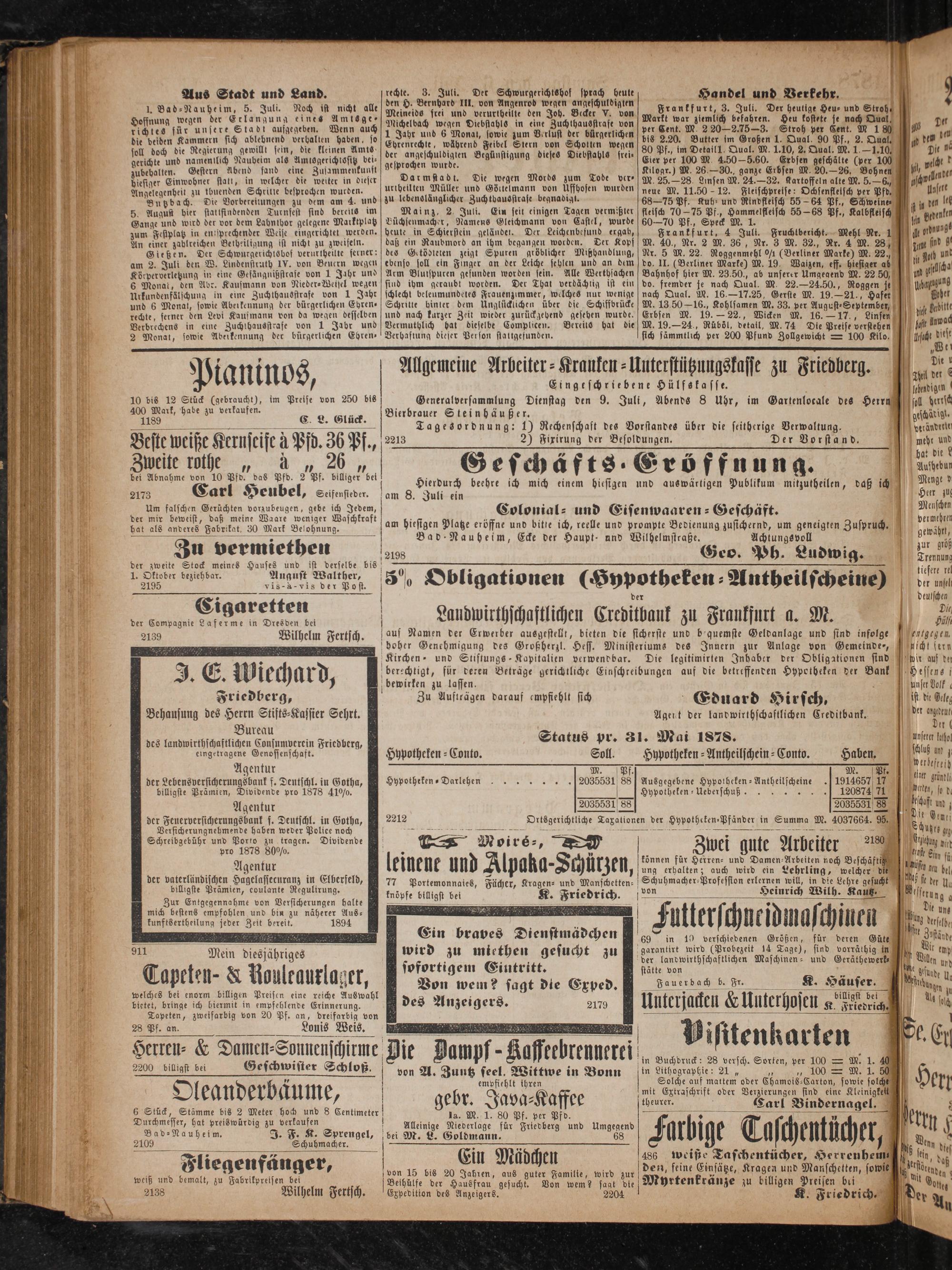 2 1— 8 J. E. Wiechard, Friedberg, Behausung des Herrn Stifts⸗Kassier Sehrt. Bureau des landwirthschaftlichen Consumverein Friedberg, eingetragene Genossenschaft. Agentur der Lebensversicherungsbank f. Deutschl. in Gotha, billigste Prämien, Dividende pro 1878 41%. Agentur
