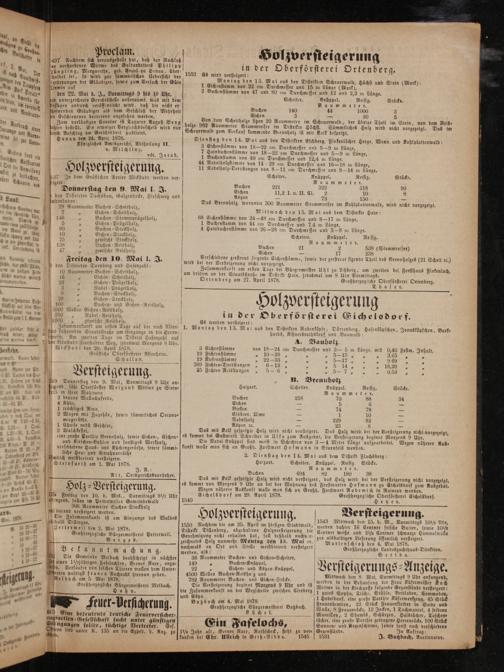 * Sch am dritten an der Staatsstraße im Distrikt Hain, jedesmal um 9 Uhr Vormittags. 16„ Eichen- Scheitholz, Ortenberg am 27. April 1878. Großherzogliche Oberforsterei Ortenberg. 39 5 Eichen-Prügelholz, a 5 5 Nadel-Prügelholz,